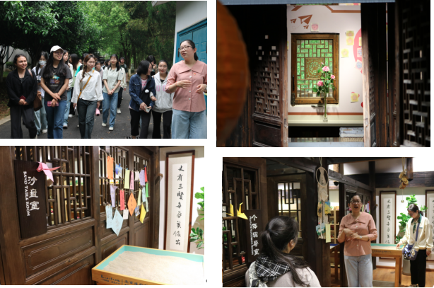 韩秋玲老师带领师生参观了九峰职业公司“耘之慧”教科研心理辅导工作室。工作室建筑古色古香,内设各个功能活动室,半封闭的心理辅导区,沙盘室和发泄屋,还有员工许愿墙。墙上挂着的瓶罐、纸条和明信片是职校员工写下的对未来的畅想和给自己或朋友的信,还特别开设了”幸运上上签“区域供一部分不善言辞的员工通过抽签表达心里话。古朴、雅致、尊重、安全的心理辅导室是员工们的心灵补给站和温馨心家园。