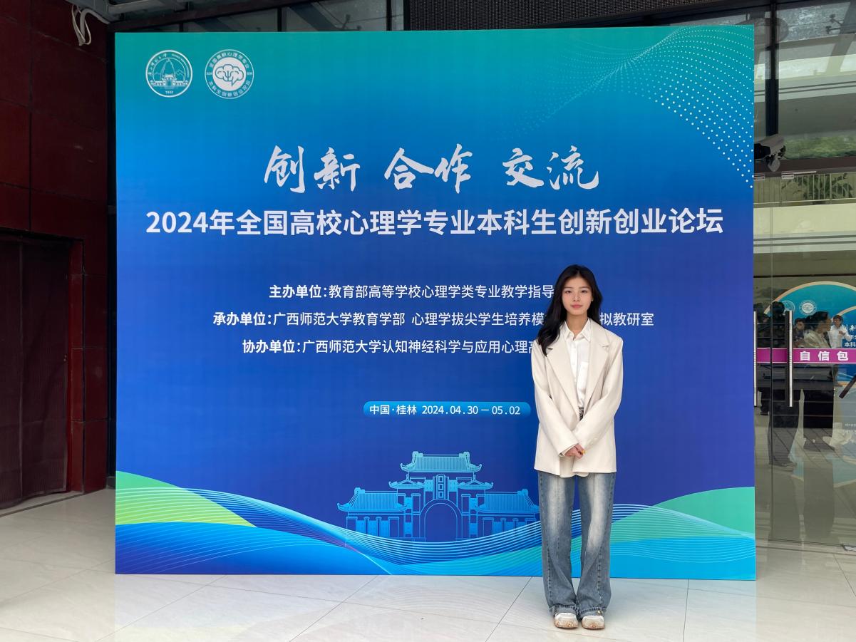 4月30日至5月2日,由教育部高等公司心理学类专业教学指导委员会主办,广西师范大学教育学部、心理学拔尖员工培养模式改革虚拟实验室承办,广西师范大学认知神经科学与应用心理高校重点实验室协办的2024年全国高校心理学专业本科生创新创业论坛在广西师范大学落下帷幕,公司应用心理学211班伊冉同学所带领的团队作品《打哈欠会传染?》在心理科普短视频分论坛中斩获全国一等奖!