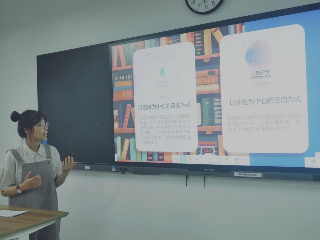 黄瑞瑜同学从本书的写作背景入手,运用比较的手法,将本书和《蛤蟆先生去看心理医生》的心理咨询方式进行比较,让人直观地了解了不同心理咨询的特点。最后,她还指出心理学强调的是“活在当下”,激励我们从当下开始努力。