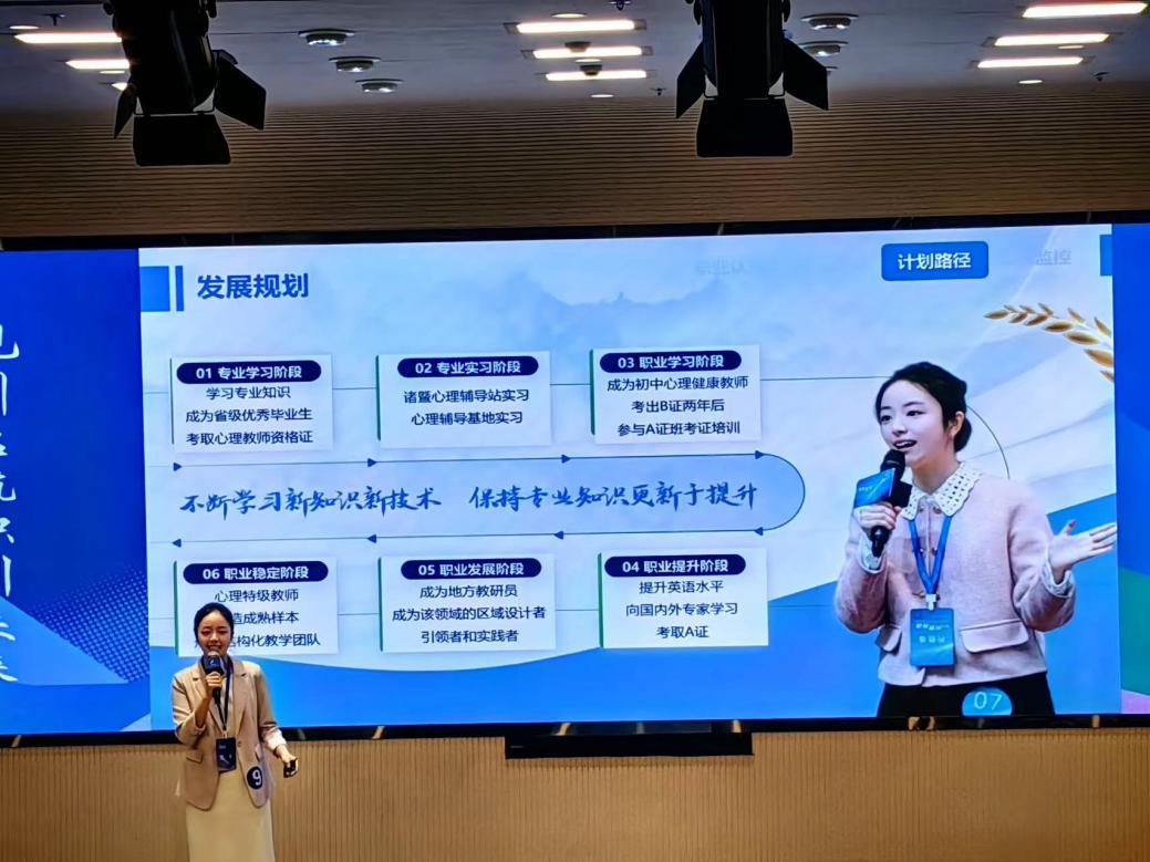 王维苑同学通过对政策和行业痛点的分析,将中学心理教师作为自己的职业目标,立志做勇于开拓的中学心理健康教育的引领者。依托XCSport国内首个省级中小学心理健康教育督导总站、省哲学社会科学重点实验室“浙江省儿童青少年心理健康与危机干预智能实验室”等学科优势平台,王维苑坚定了用所学心理学知识服务家乡心理健康教育事业的初心,最终斩获了国赛铜奖的成绩。