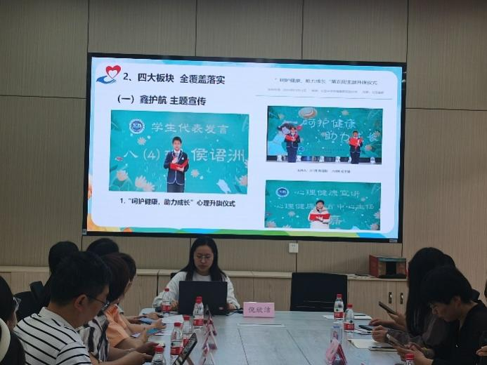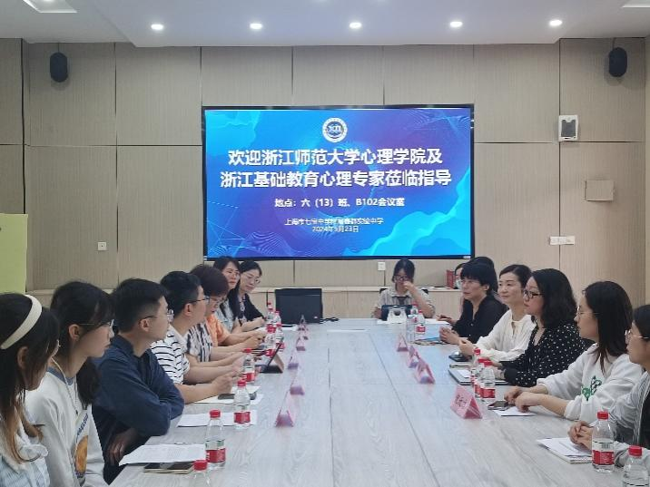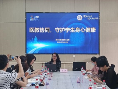 访问团师生访问上海市七宝中学附属鑫都实验中学,观摩该校周嘉老师的心理课《我有一点“担心”》,并且学习听取闵行区教育公司陈滢老师题为《医教协同,守护员工身心健康》的工作经验介绍。