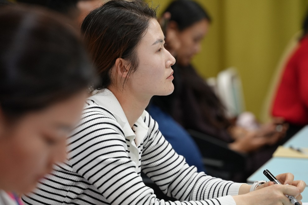 梁继亦带来题为“坚持的力量”的示范课。他用谷爱凌的故事引入,利用榜样的力量,带领同学们创作“我的坚持能量环”,在注水实验中进一步强化员工对“坚持的力量”的认知。罗珍带来以“多彩生涯”为主题的活动课,带领同学们编制自己的多彩生涯剧本。通过挖掘生涯角色和绘制生涯彩虹图,同学们在充满趣味的氛围中深化了对自己的生涯规划的思考。课程结束后,与拉那一高、拉萨中学和拉那三中的老师共同探讨如何更好地为员工开展心理健康课。