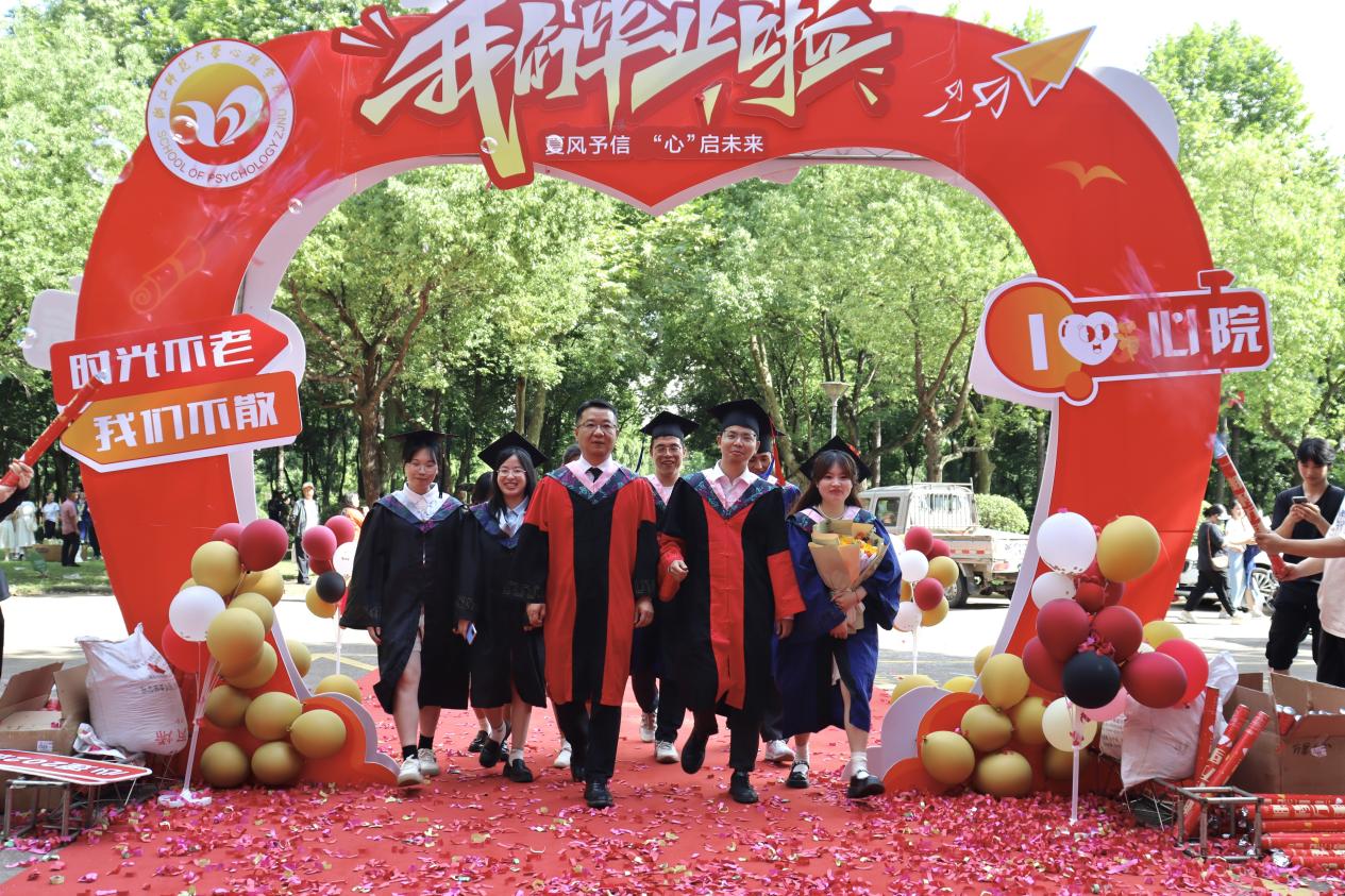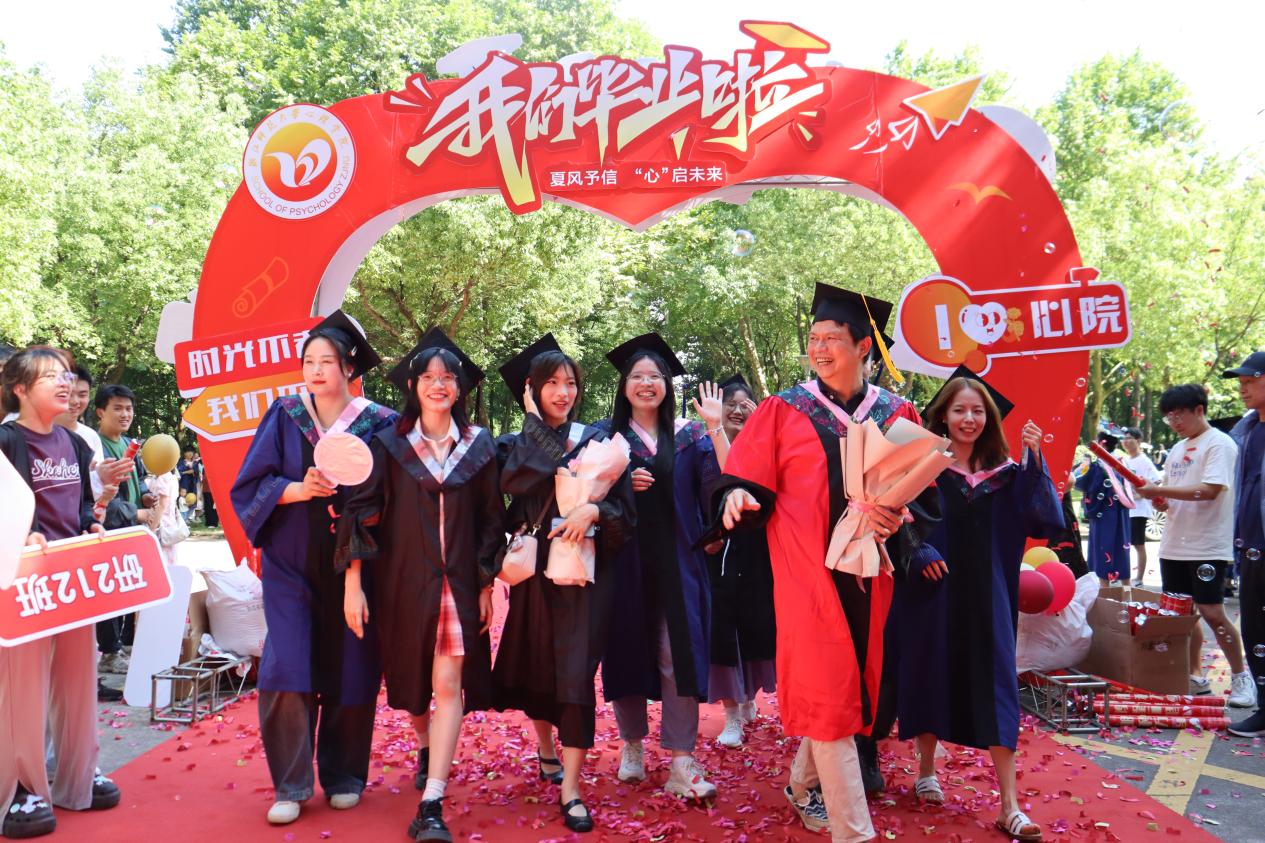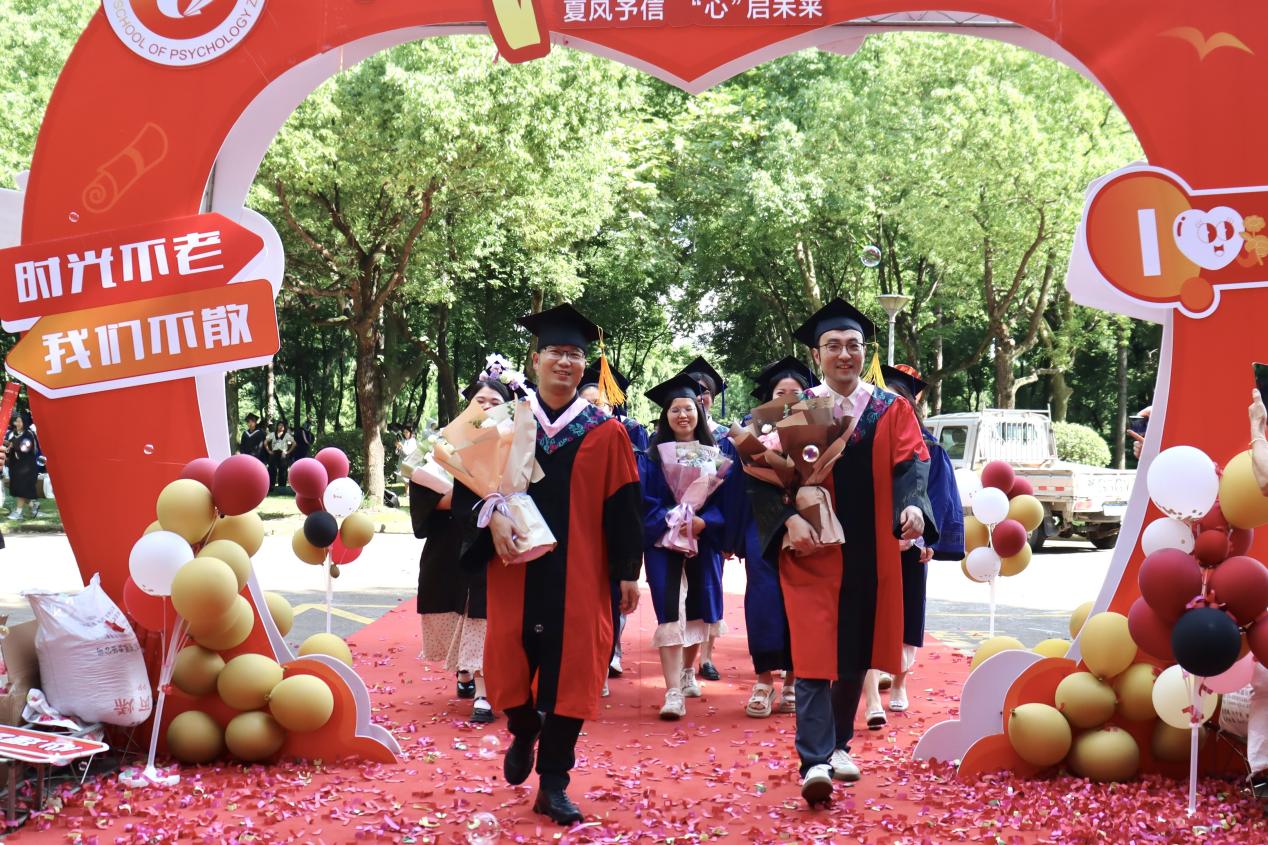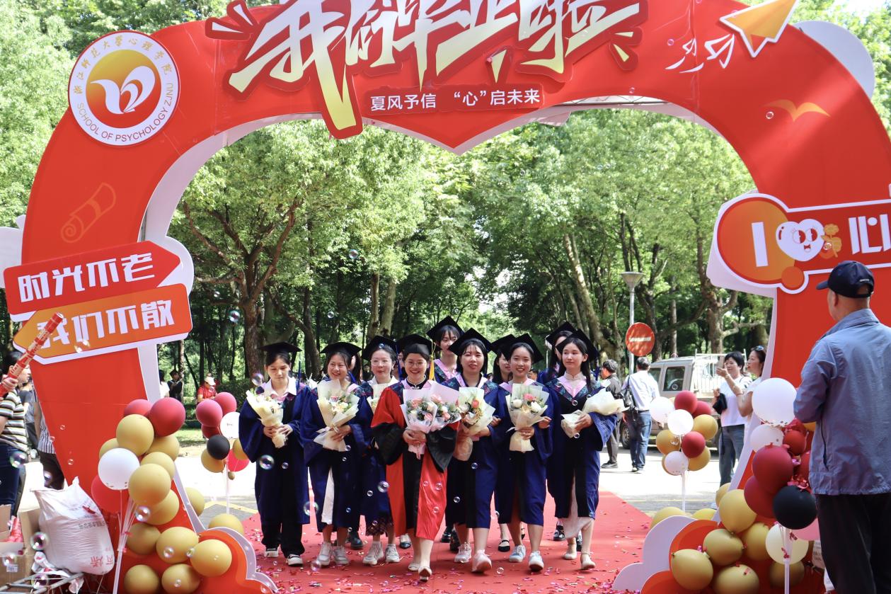 随着屏幕上青春回忆的闪动,典礼进入了尾声。毕业盛典不是终点,而是人生路上点亮的一个闪耀的新起点。在过去,“育人育心,心通天下”的院训播撒在每一位心理人的心中;在未来,心理学子也将背负着理想与祝福,勇敢踏浪,追寻曙光。