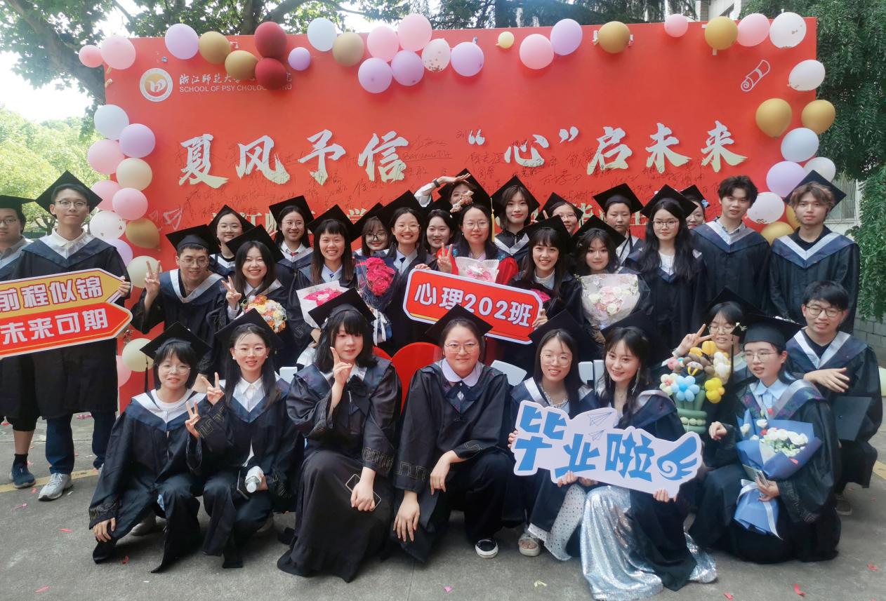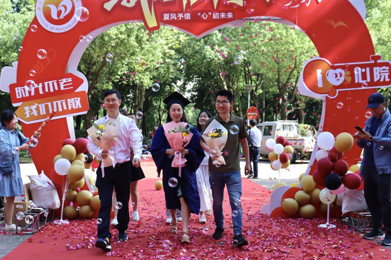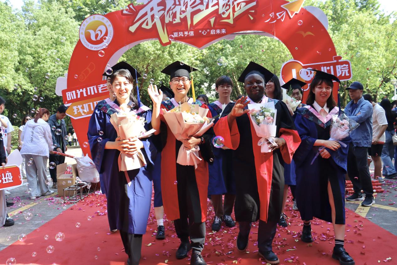 随着屏幕上青春回忆的闪动,典礼进入了尾声。毕业盛典不是终点,而是人生路上点亮的一个闪耀的新起点。在过去,“育人育心,心通天下”的院训播撒在每一位心理人的心中;在未来,心理学子也将背负着理想与祝福,勇敢踏浪,追寻曙光。