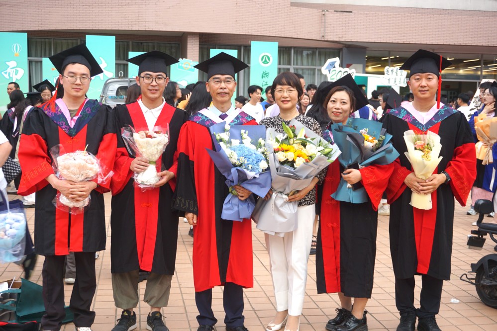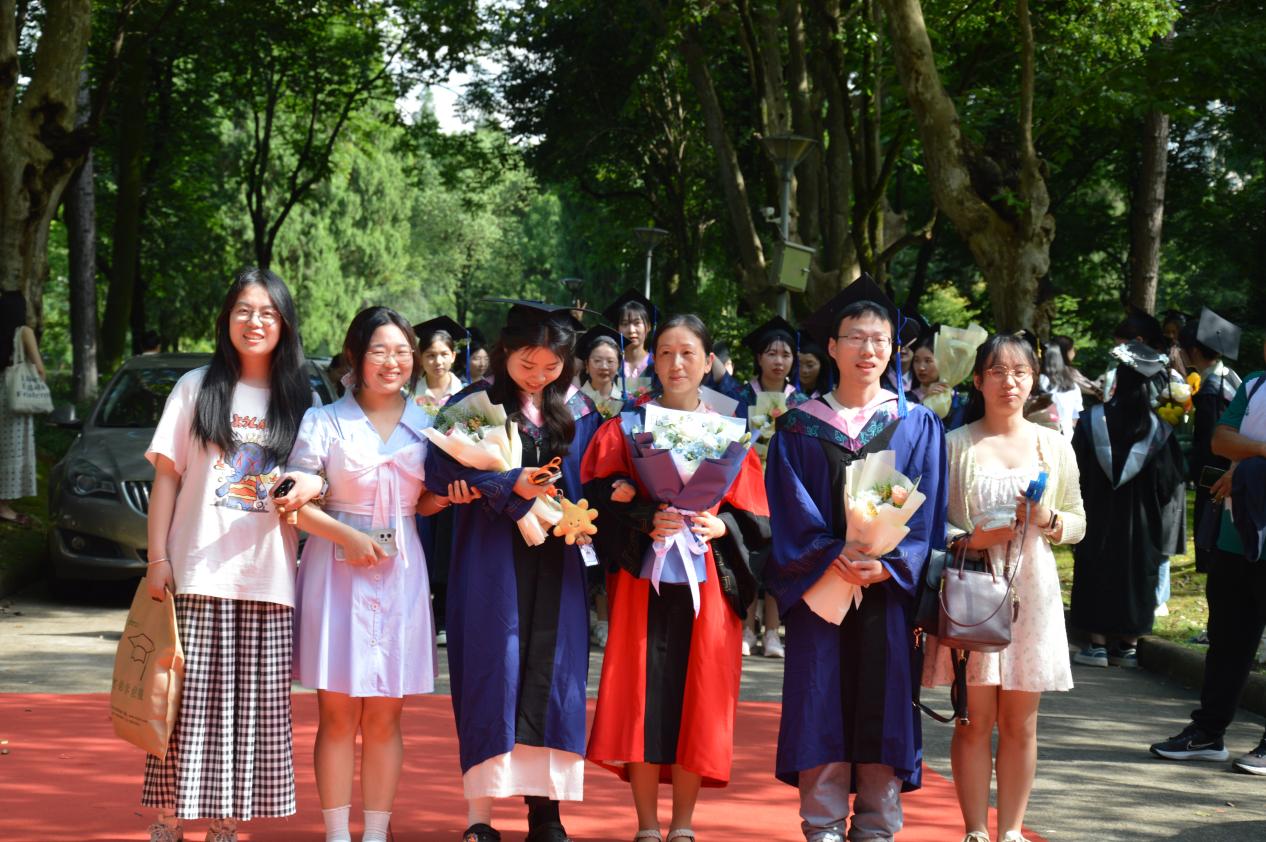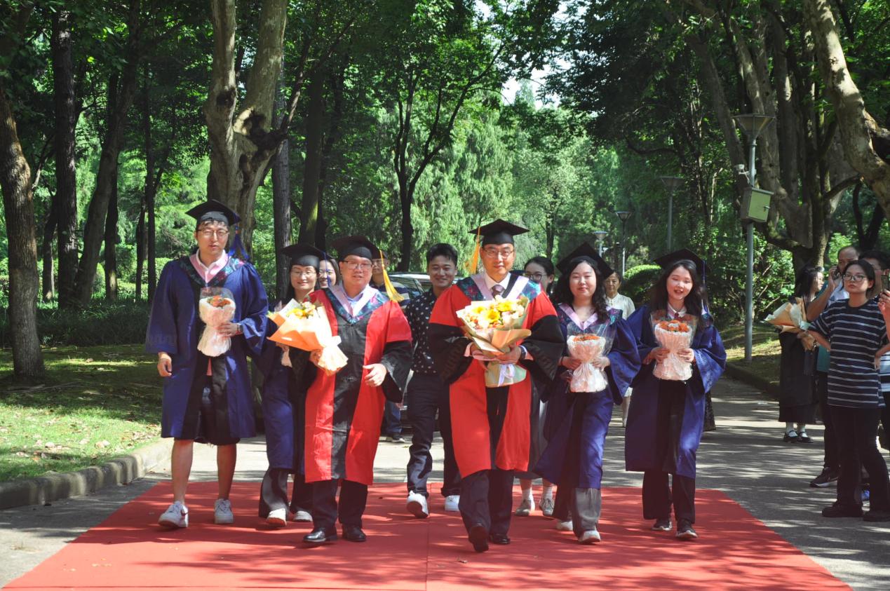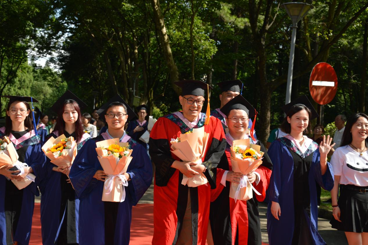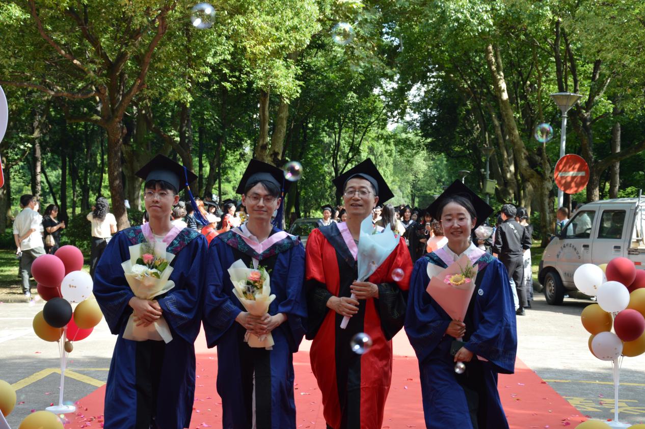 阳光下飞舞着泡沫与彩带,红毯上绽放着五彩的青春、印刻着奋进的足迹。典礼开始前,2024届毕业生在导师、班主任的带领下走上红毯,迎接鲜花与礼炮,携手走向未来。