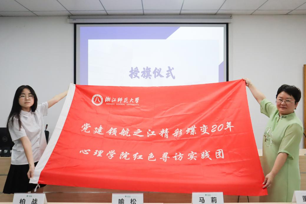 马莉老师及喻松老师为实践队授旗。