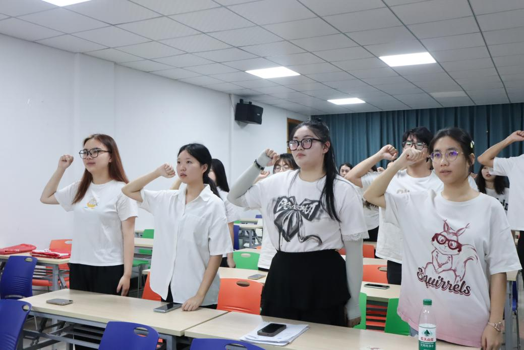 实践队代表黄瑞瑜同学领读实践队誓词。宣言掷地有声,队员们踌躇满志。
