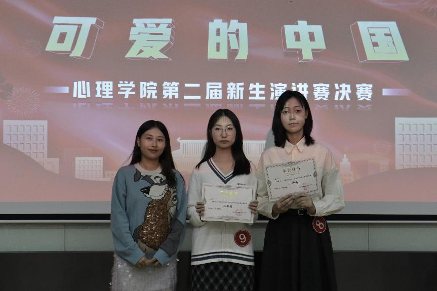 本次新生演讲比赛,不仅是一场青年学子爱国情怀的深情颂歌,更是一次中华民族对未来宏伟蓝图的集体宣誓与展望。参赛者们以澎湃的激情与无限的青春活力,生动诠释了新时代心理青年的赤子之心与崇高梦想。在此,衷心期望每一位心理学子能够坚守初心,矢志不渝,以无畏的勇气与不懈的努力,共同绘制“可爱中国”更加灿烂辉煌的未来图景,贡献新心理人的青春力量!