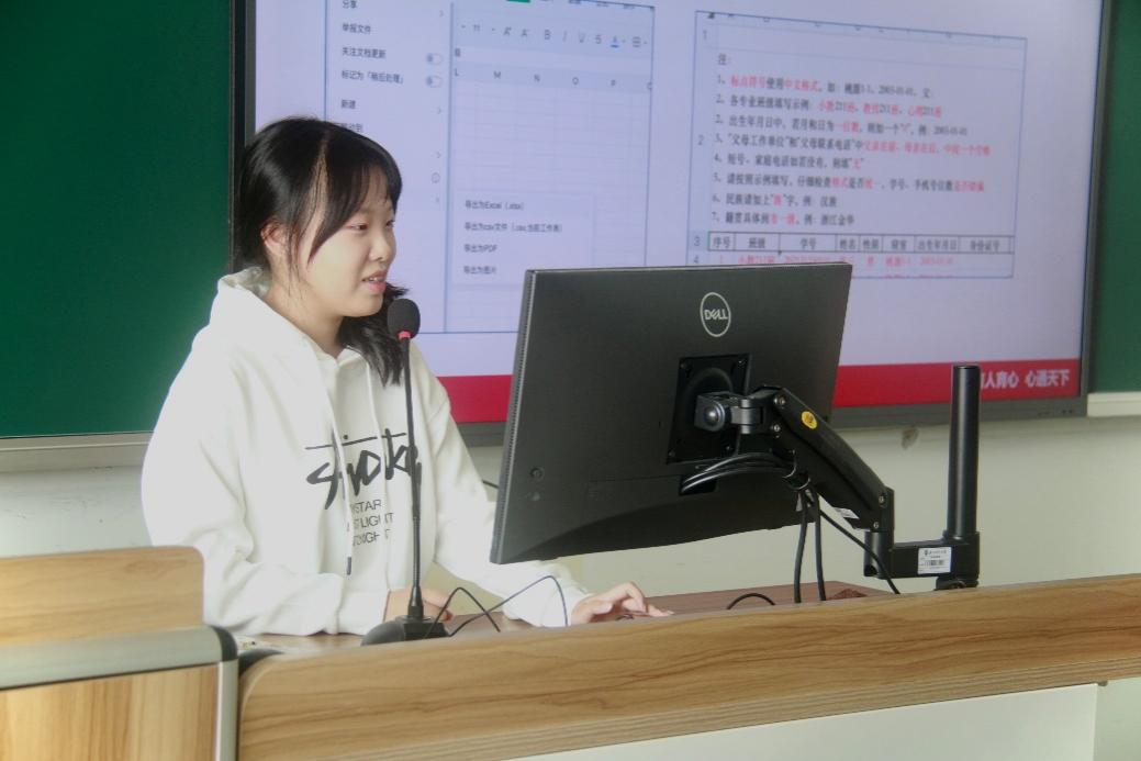 团务中心组织部部长陈玉梅强调了学风建设的内容。她围绕团务规范以及各部门间的分工合作展开了详细的介绍,强调每个部门需要组织好各部门的活动,提高成员的能力和积极性,确保各项工作顺利进行。