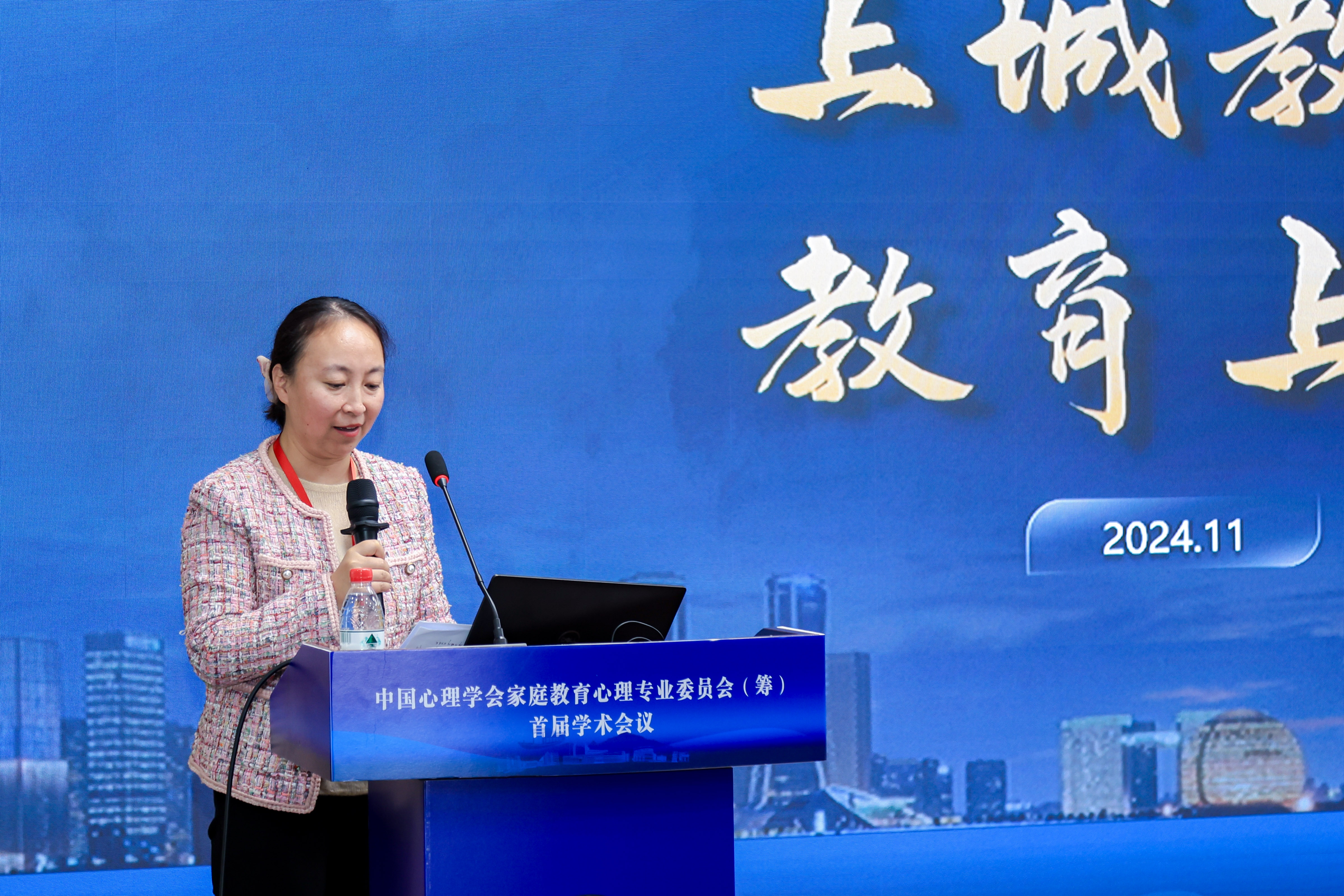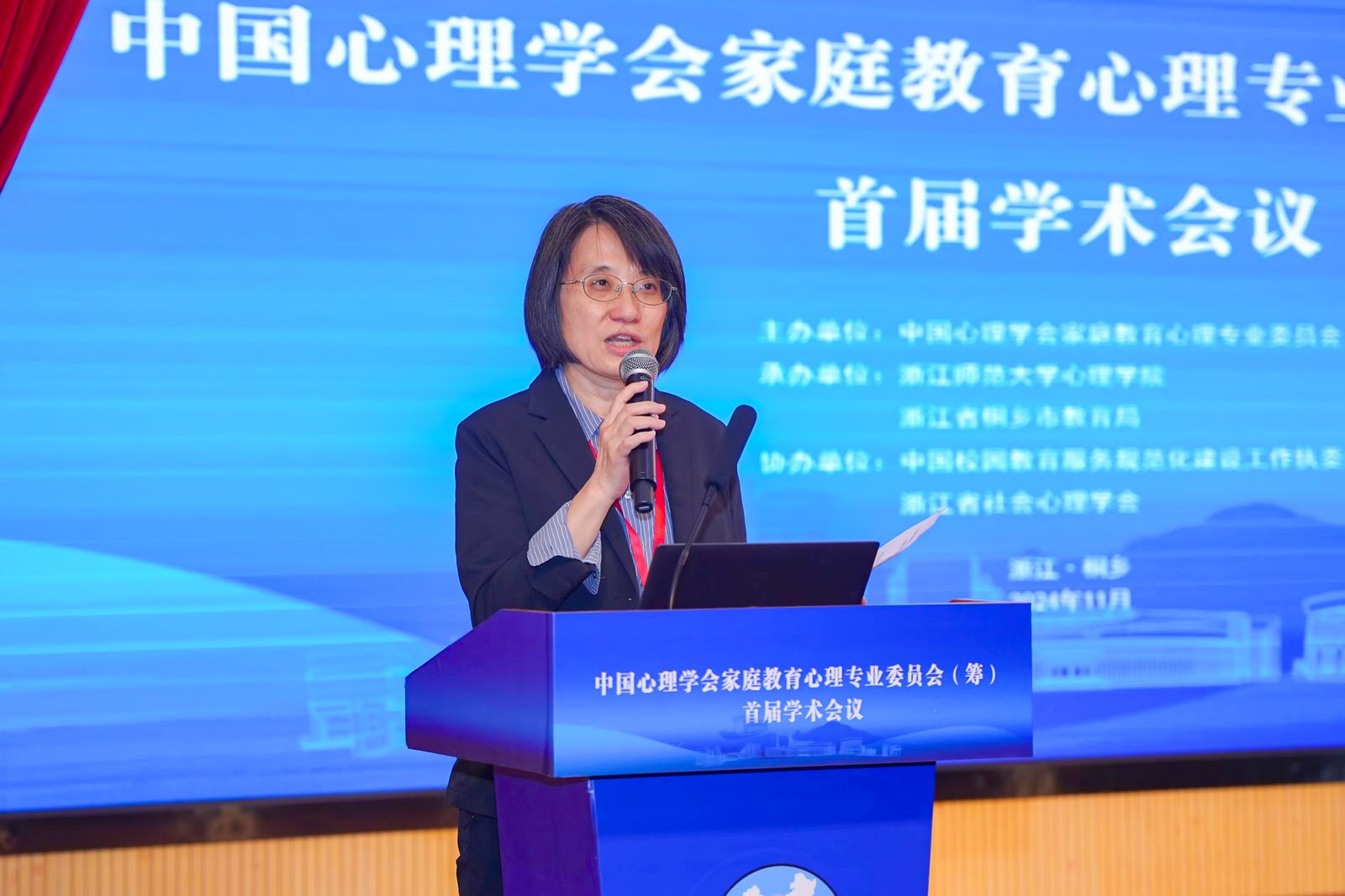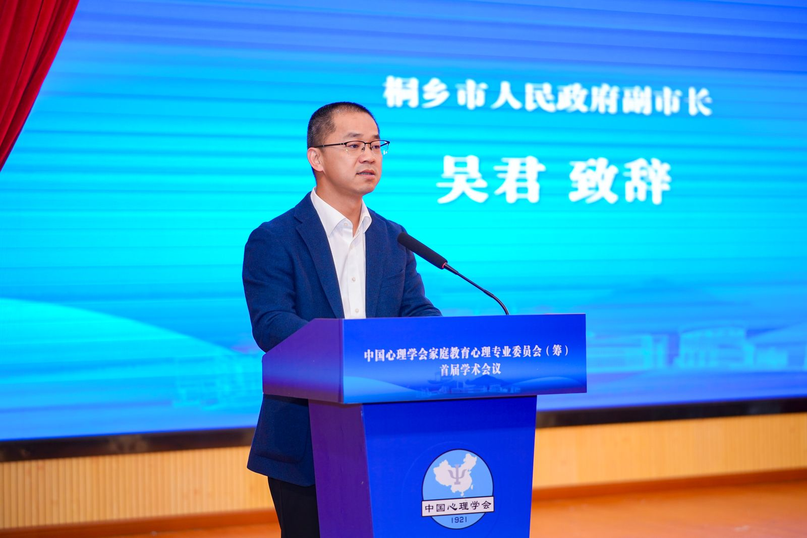 桐乡市人民政府副市长吴君先生首先对会议的召开表示祝贺,介绍了桐乡的深厚文化底蕴。随后,表达了三个祝愿:一是祝愿更多家庭教育心理成果能够在桐乡落地;二是祝愿更多家庭教育心理工作顺利推进;三是祝愿更多家庭教育心理专家与桐乡结缘。