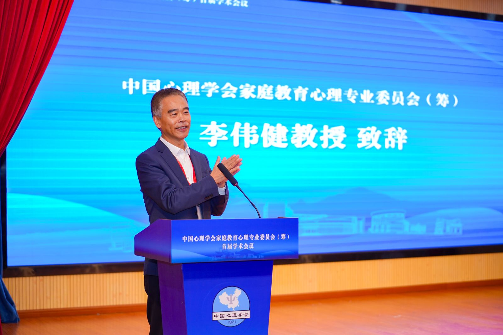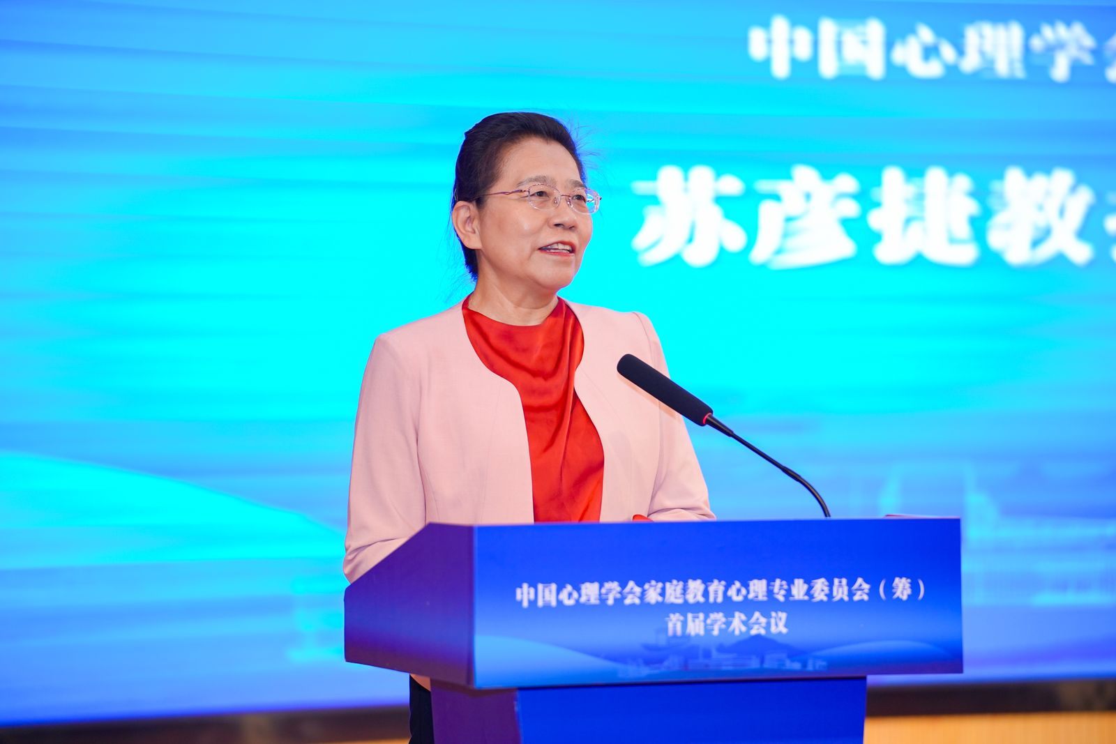 中国心理学会理事长苏彦捷教授代表中国心理学会对本次会议的顺利召开表示祝贺,表达了对中国心理学会家庭教育心理专业委员会的期许,希望该委员会能在未来的家庭教育专业研究和实践中为国家解决实际问题,并再次预祝会议的顺利召开。