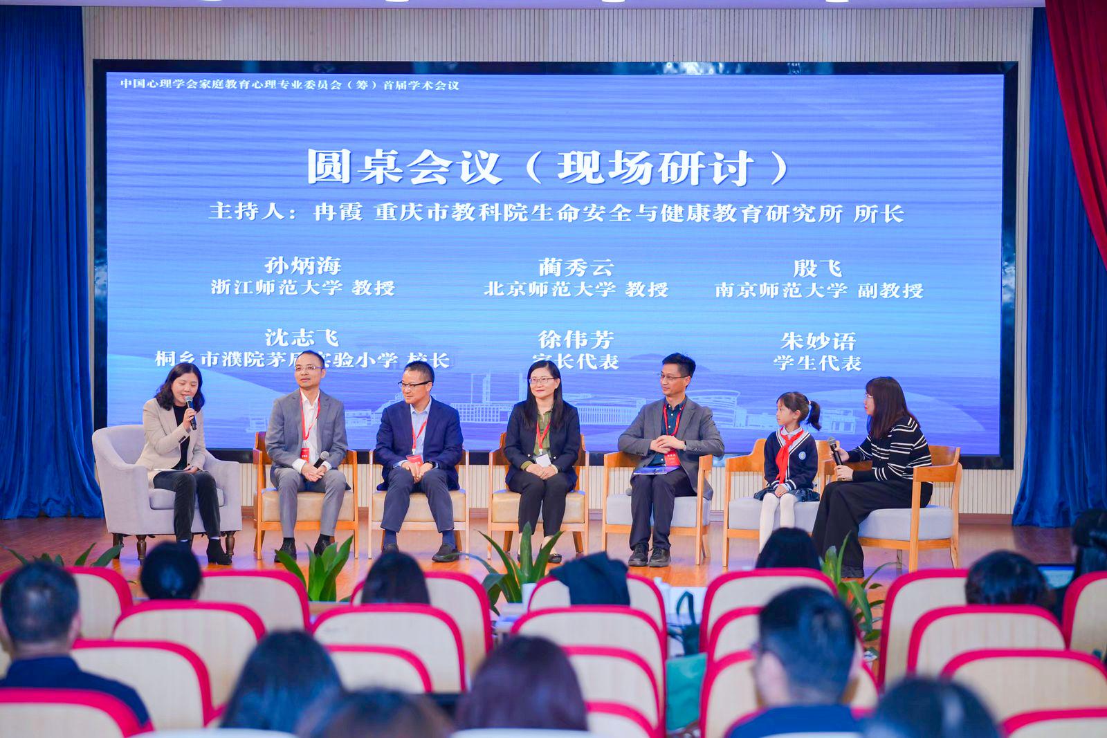接着,小学组会场开展了圆桌会议的现场研讨。由重庆市教科院生命安全与健康教育研究所所长冉霞主持,北京师范大学蔺秀云教授、南京师范大学殷飞副教授和XC体育孙炳海教授、桐乡市濮院茅盾实验小学书记董事长沈志飞、家长代表徐伟芳和员工代表朱妙语围绕“小公司家社协同育人经验”议题进行了分享与交流。