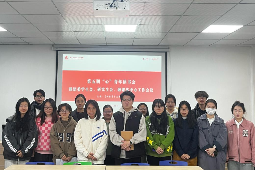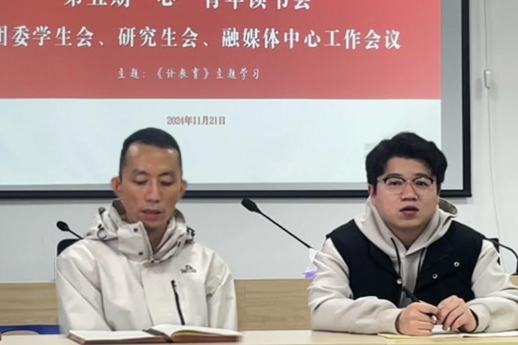 会后,员工会、研究生会及融媒体中心全体负责人围绕《论教育》主题的学习心得进行了交流分享。