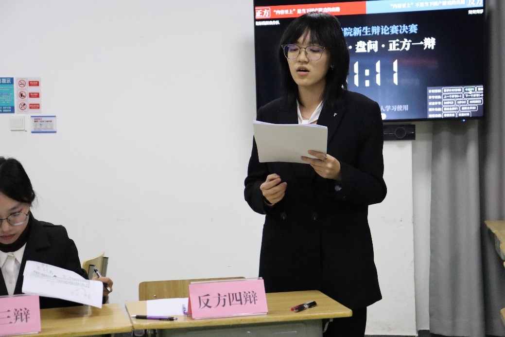 决赛的首场比赛由正方“啊对对”队对阵反方“大脑特工”队,双方就“虐待游戏NPC存在/不存在道德问题”展开激辩。“啊对对”队认为虚拟环境中的行为会影响玩家现实中的同理心,从而影响道德观念;而“大脑特工”队则表示游戏是虚拟世界的一部分,不应将其中的行为直接关联到现实生活。经过一番较量,“啊对对”队以其论点的深度获得了首场比赛的胜利,甘心怡荣获最佳辩手称号。