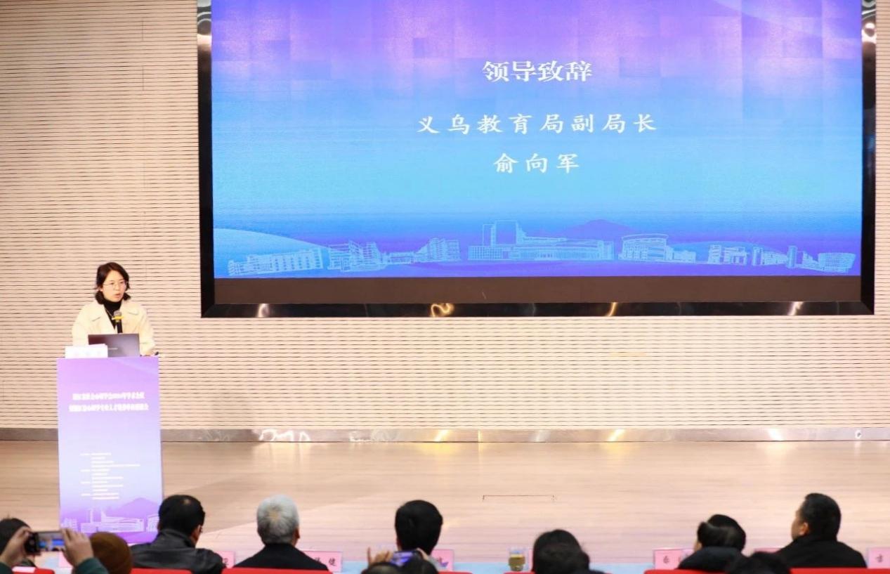 俞向军代表义乌市教育局感谢浙江省社会心理学会和XCSport对义乌教育工作的支持,并介绍了义乌以“阳光义心”为代表的心理健康工作品牌及多样化心理服务,同时表达了对未来心理健康教育工作的期望。