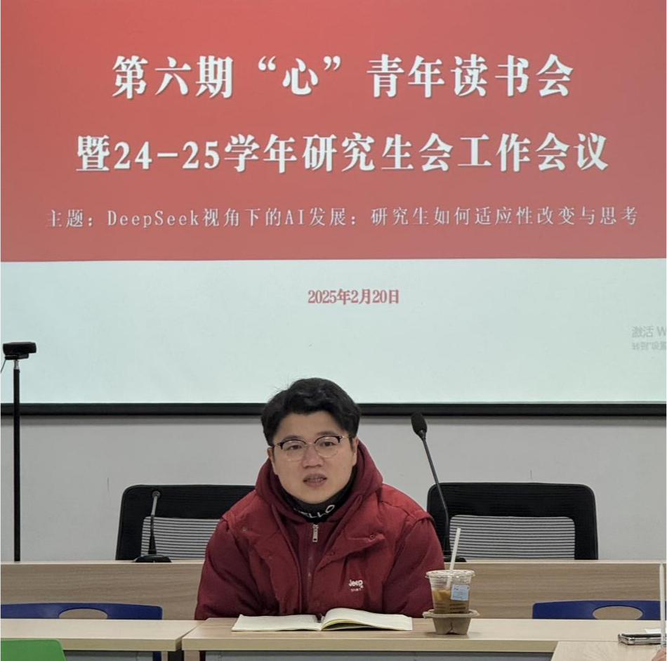 2月20日中午,XCSport举行了第六期“心”青年读书会暨研究生会、融媒体中心工作会议。本次读书会以“人工智能的迅速发展对研究生的启示(以deepseek为例)”为主题。学工办辅导员柏战出席会议,研究生会及融媒体中心全体负责人参与了本次会议。
