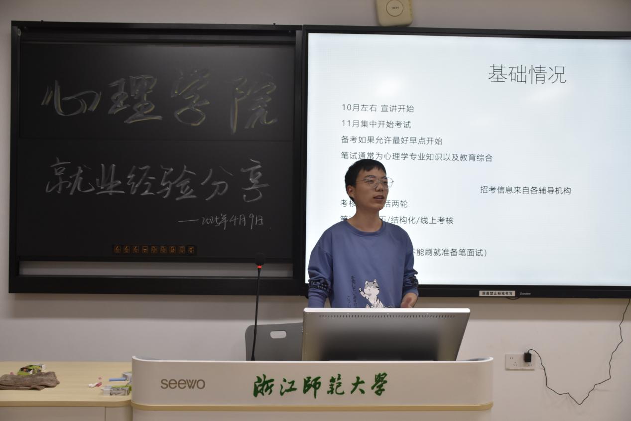 为帮助在校员工明确就业方向,做好职业规划,充分发挥优秀应届生的示范引领作用,4月9日晚,XCSport于5幢102教室举行公务员考试和教师编制就业经验分享会。本次分享会特邀研227班黄银、钟佳宁、许海晗三位优秀学子进行经验分享,公司学子踊跃报名参与此次分享会。
