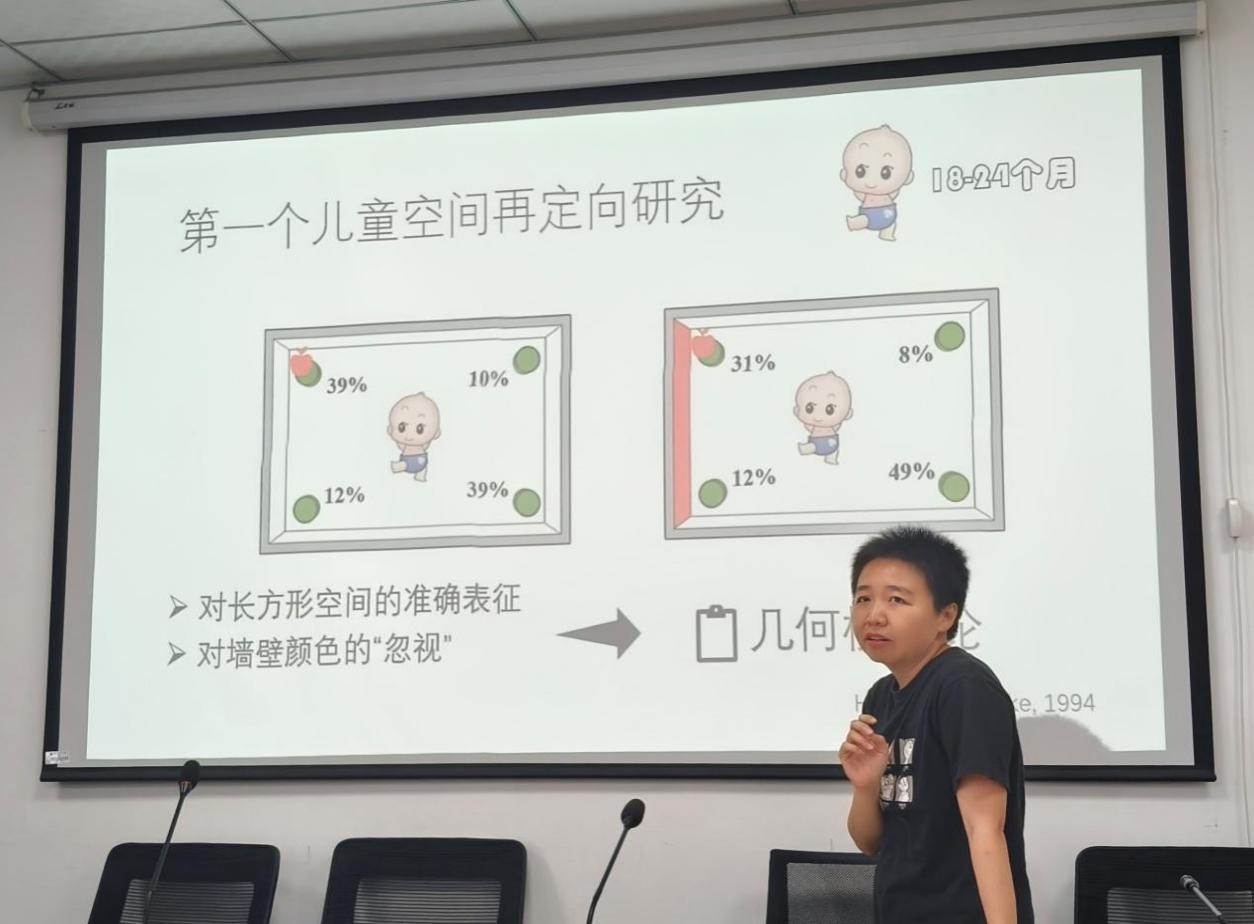 在讲座的第二部分,胡清芬教授重点分享了她带领的团队在过去15年中的研究成果。通过精心设计的实验和长期观察,团队从位置结构、高度、局部几何特征以及非几何线索等多个角度,深入探讨了儿童空间表征的形式和阶段性发展规律。在结合现有研究成果的基础上,胡清芬教授从儿童空间表征在不同年龄段呈现出的特点和发展趋势出发对未来的研究做出了展望,包括新技术在儿童认知研究中的应用前景。