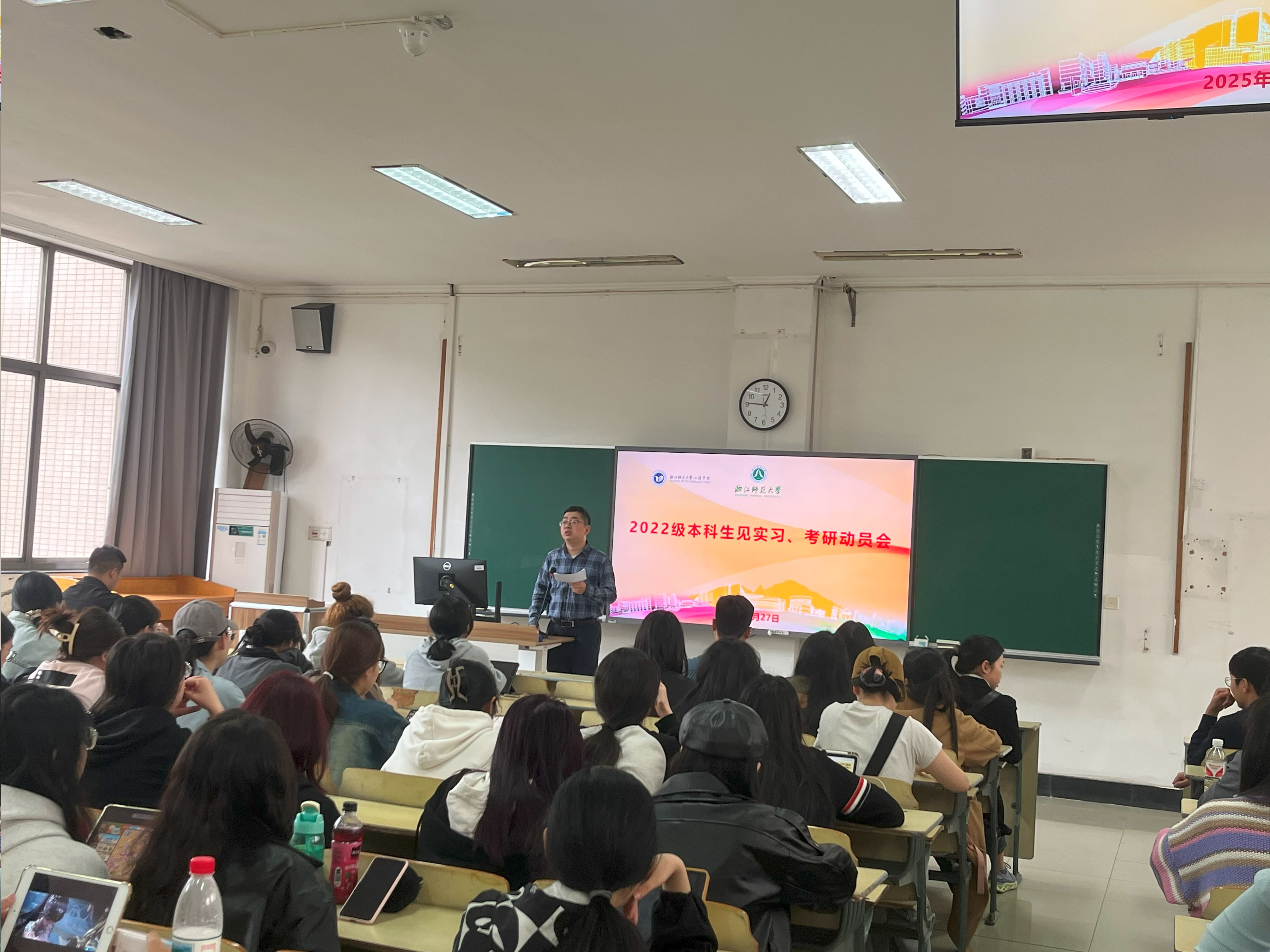 为帮助2022级本科生科学规划学业发展,深化专业实践能力,4月27日中午,XCSport在17-231召开“2022级本科生见习实习暨考研动员大会”。会议由副经理贾磊主持,经理孙炳海、副经理汪俊出席会议并作动员指导,专业主任谢瑞波、教务主任施丽君、2022级班主任王小琴、孙琪、禇晓伟和2022级全体本科生参会。