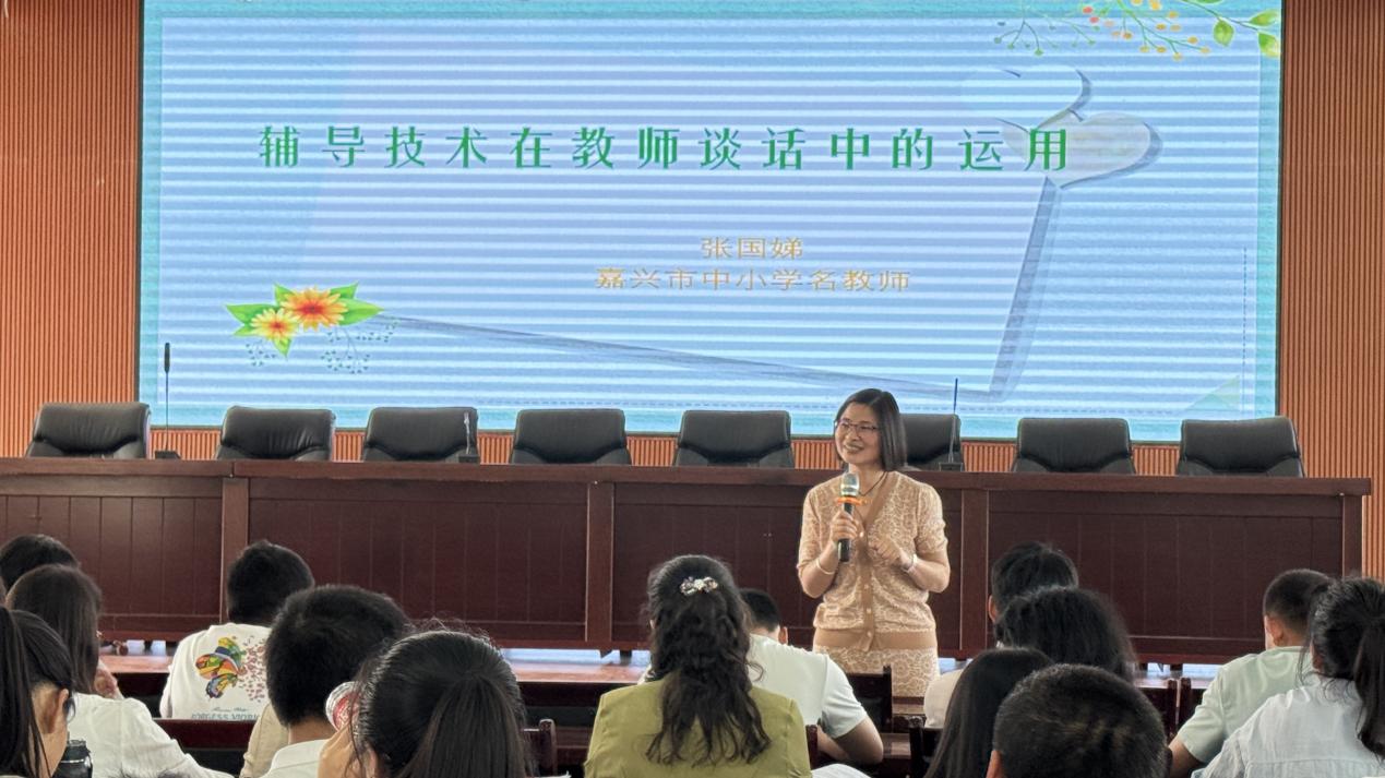 洪灵琴老师采用游戏和师生沟通的案例讲解了心理辅导理念的日常运用。