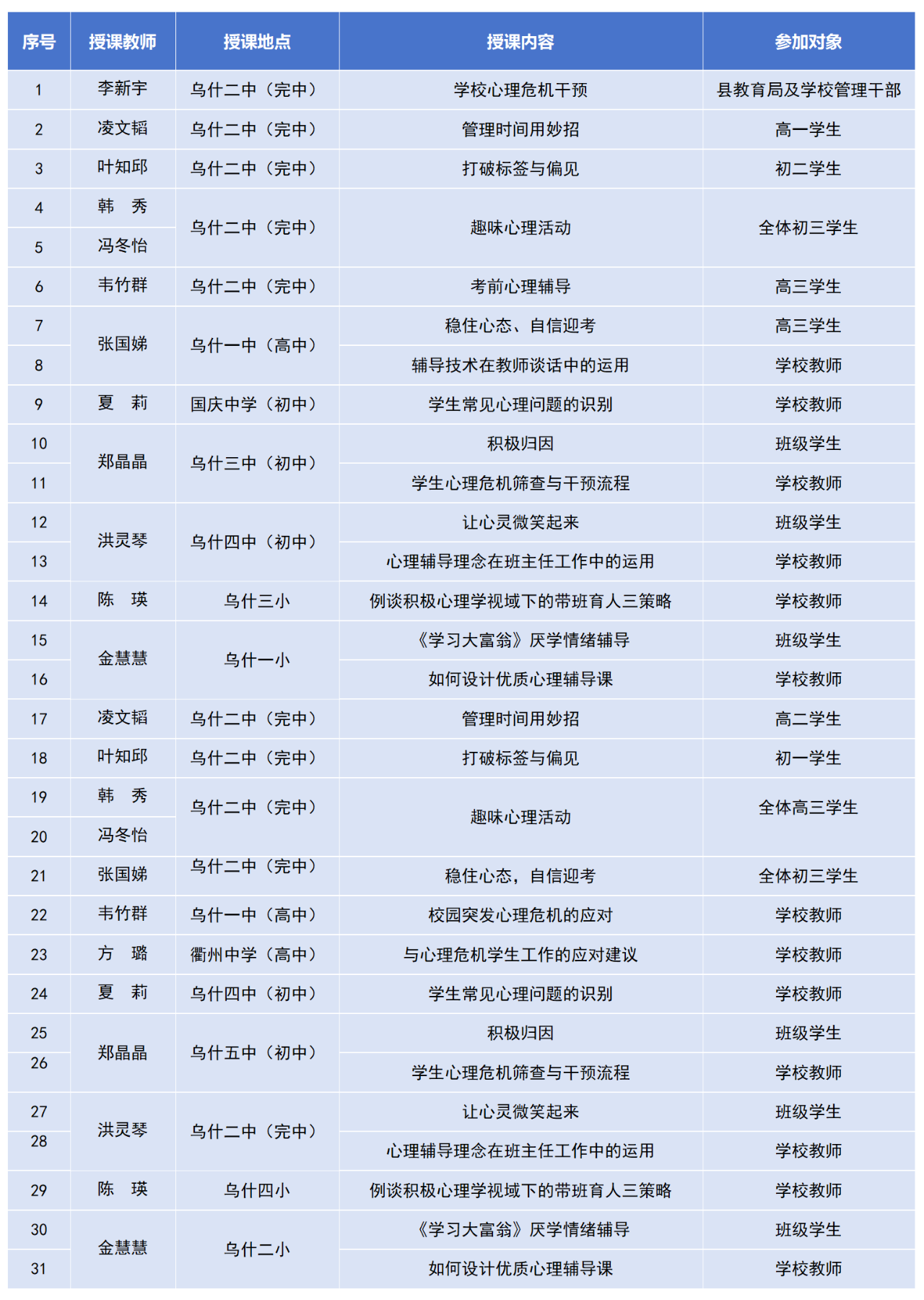 活动以心理赋能为核心,通过心理健康教育报告、专题讲座、心理团辅等多种形式,为新疆乌什县师生提供上门送教服务,助力当地教育高质量发展,用教育智慧浇灌浙疆团结之花。