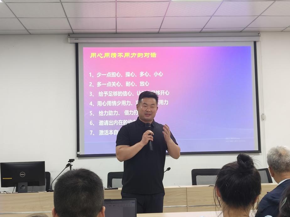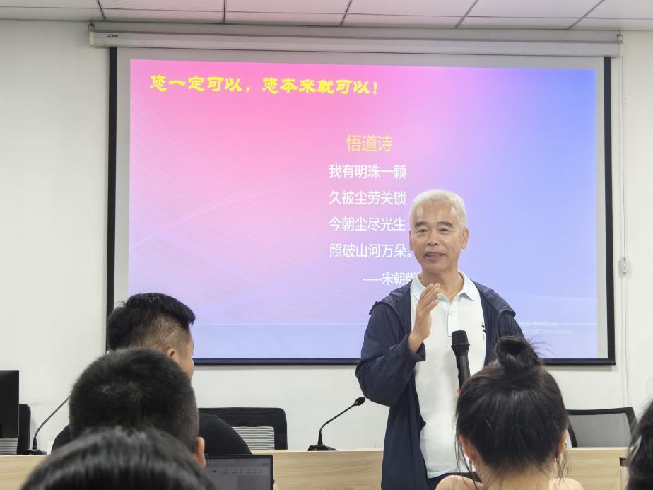 在第三部分,史占彪教授从本土视角将“心理教练”定义为“此心即理,教练合一,激发潜能,助人成事”,强调其核心是聚焦未来目标与潜力,通过提问、反馈、激励引导被教练者自我发现与提升,并系统介绍了心理教练的要素、对话思路、理念、逻辑、技巧及特征。在现场特别设置的模拟对话环节,史占彪教授带领师生直观感受对话的精神与力量,帮助个体看见自身积极资源。