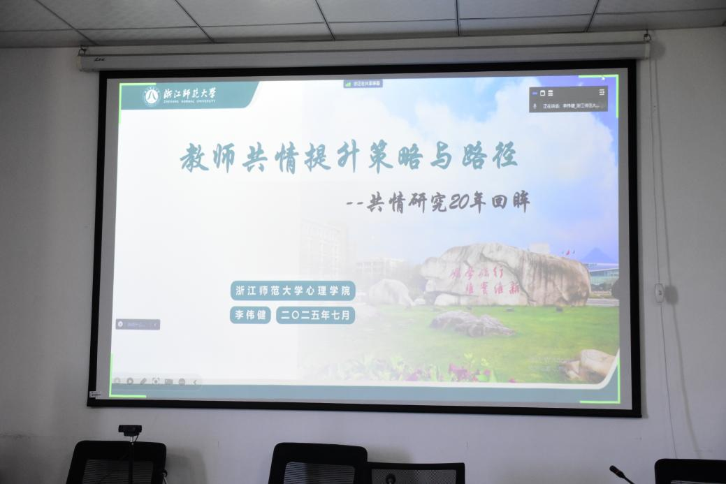 中国心理学会常务理事、XC体育心理学学科带头人李伟健教授首先作了题为《教师共情提升策略与路径——共情研究20年回眸》的主旨报告。李伟健教授在报告中回顾了20年来教师共情研究的历程,并展示了团队在教师共情领域的代表性成果,包括共情能力与员工学业成绩的正相关关系、共情发展的悖论现象等。针对共情能力提升,他提出了多项策略,包括通过视频录制与反馈训练提高共情准确性,以及重塑教师思维模式以增强共情动机,为教师专业成长提供了科学指导。