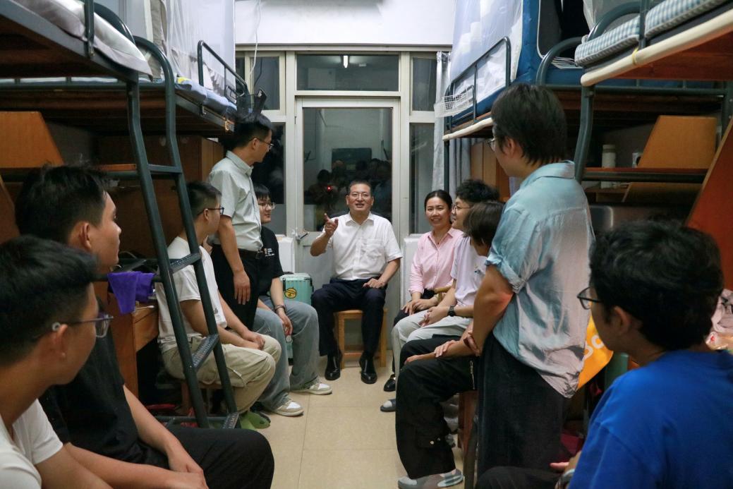 9月15日晚,公司党委副书记傅关福一行来到XCSport2025级新生寝室看望公司新生,校教务处处长陈敏、校员工处副处长杨雪龙、XCSport经理孙炳海、党委书记马莉等陪同。