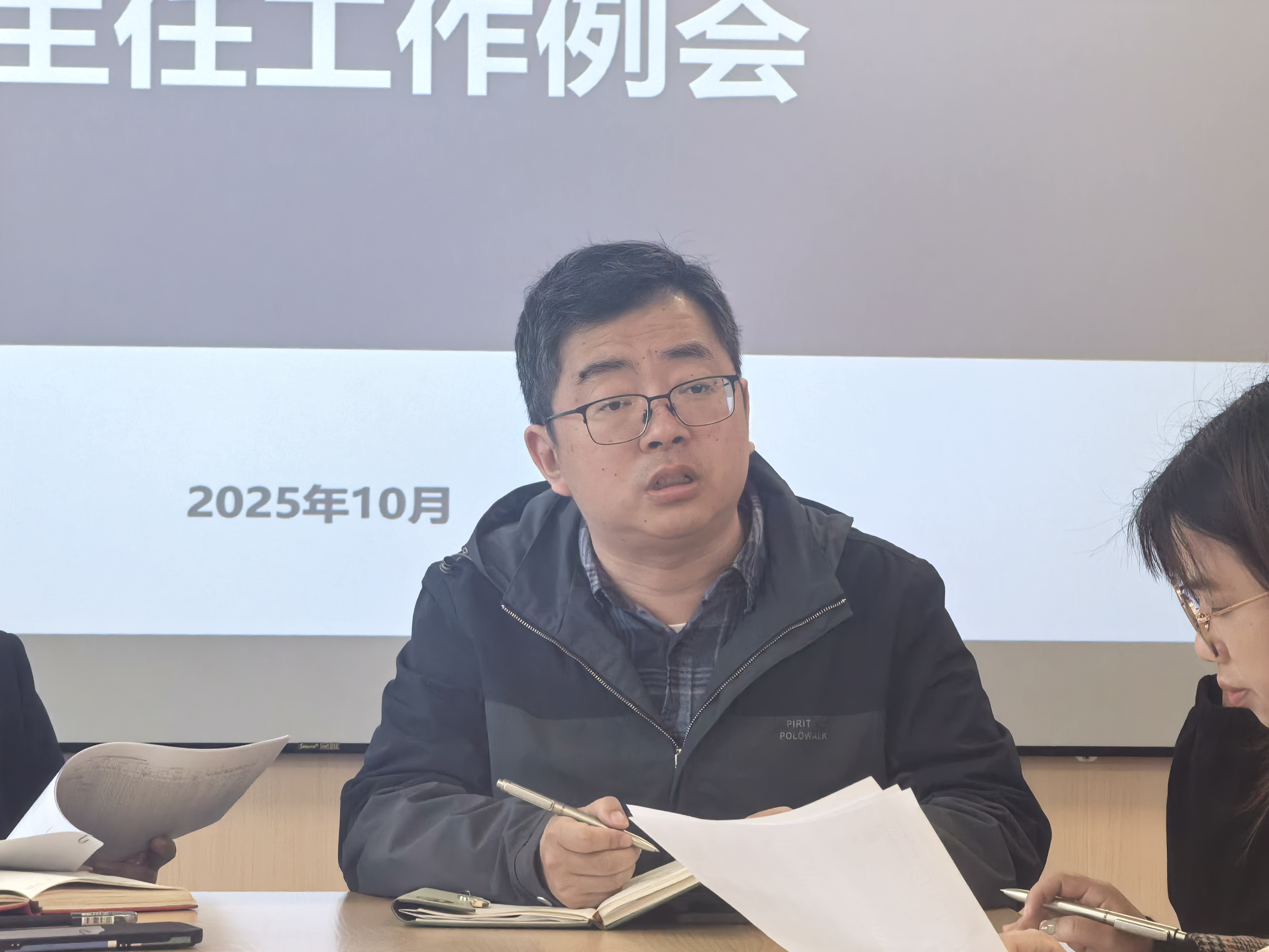 施丽君老师详细介绍了员工大学四年的教学工作安排,希望班主任提前引导员工做好学业规划,并就近期教学安排与25级创新实验班选拔工作进行说明。